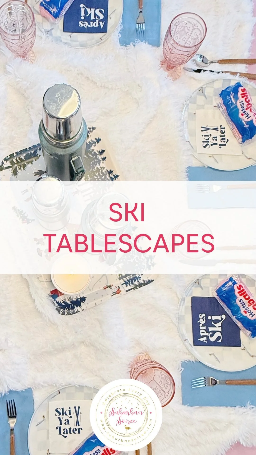 Winter is the perfect time to set a cozy table and fill it with friends and warm, yummy food. My inspiration for this tablescape comes from my Up to Snow Good Napkins and features my favorite new ski dinner plates.
