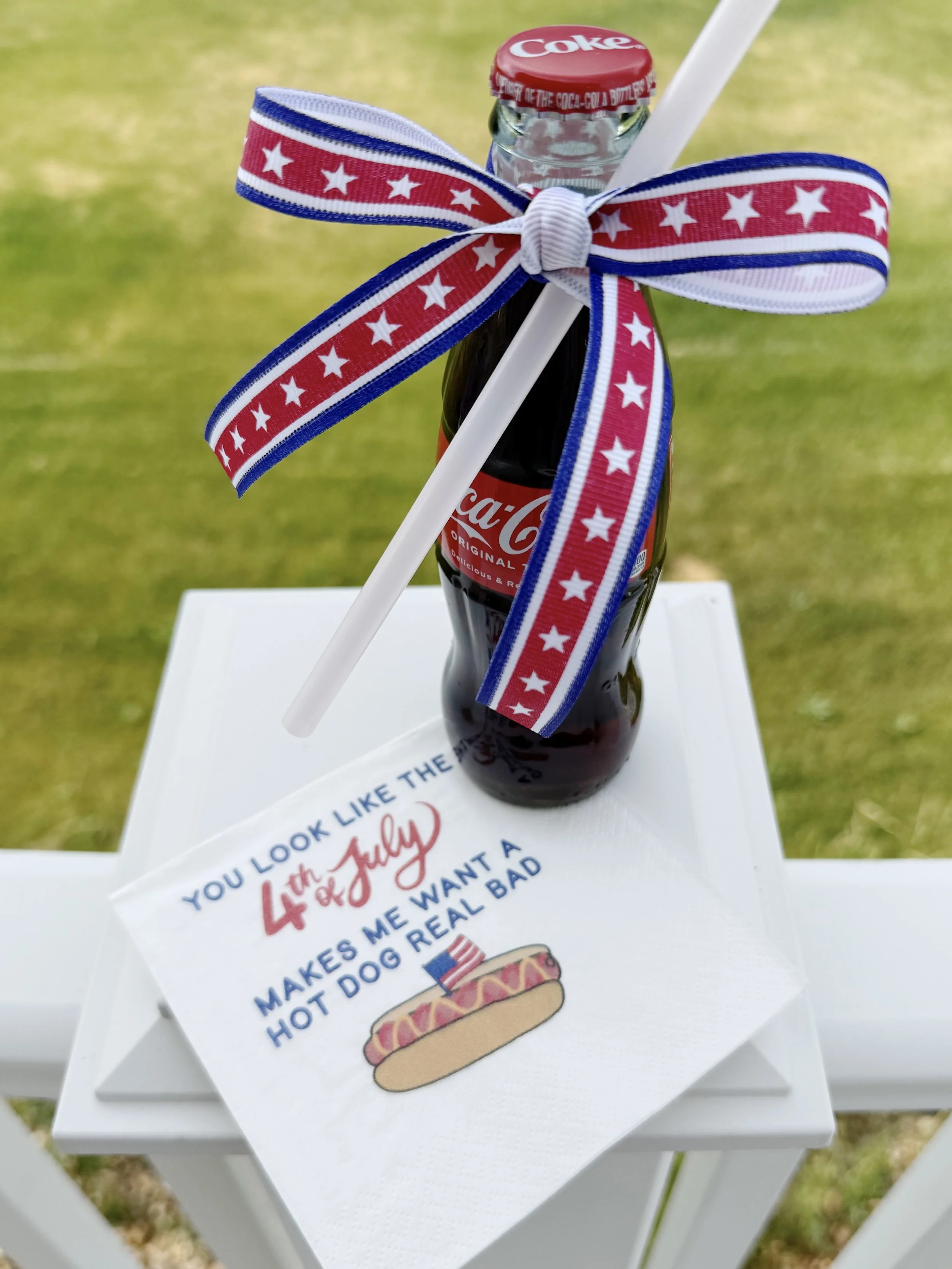If you know me, you know I’m a Dr Pepper fan through and through. However, for hosting the 4th of July, a Coke in a glass bottle just feels right! I dressed these up a bit with ribbon and color-changing straws. Add a cute napkin and in no time you’ve created a festive touch your guests will enjoy.