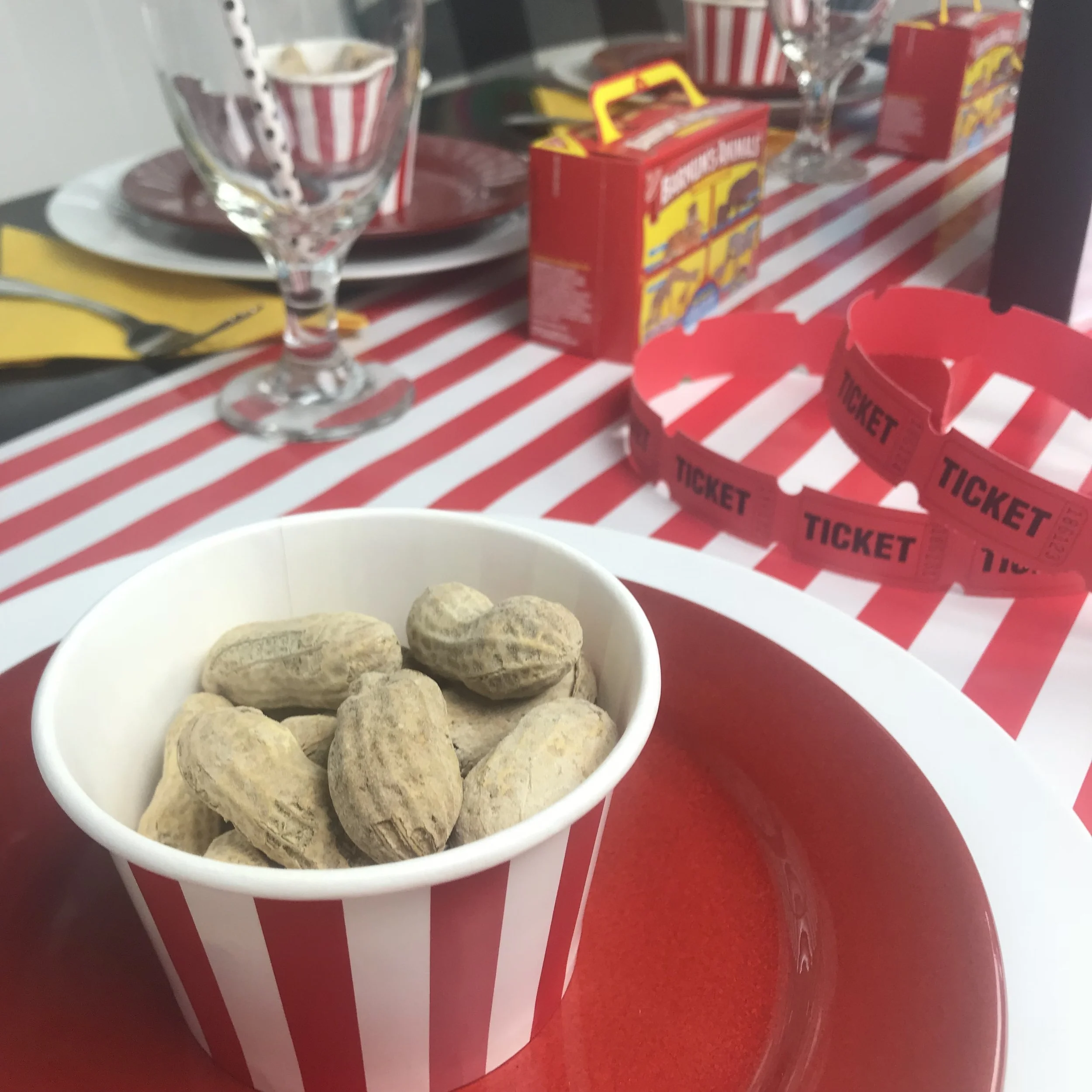 Circus stripes, peanuts and tickets gave our table a circus feel.