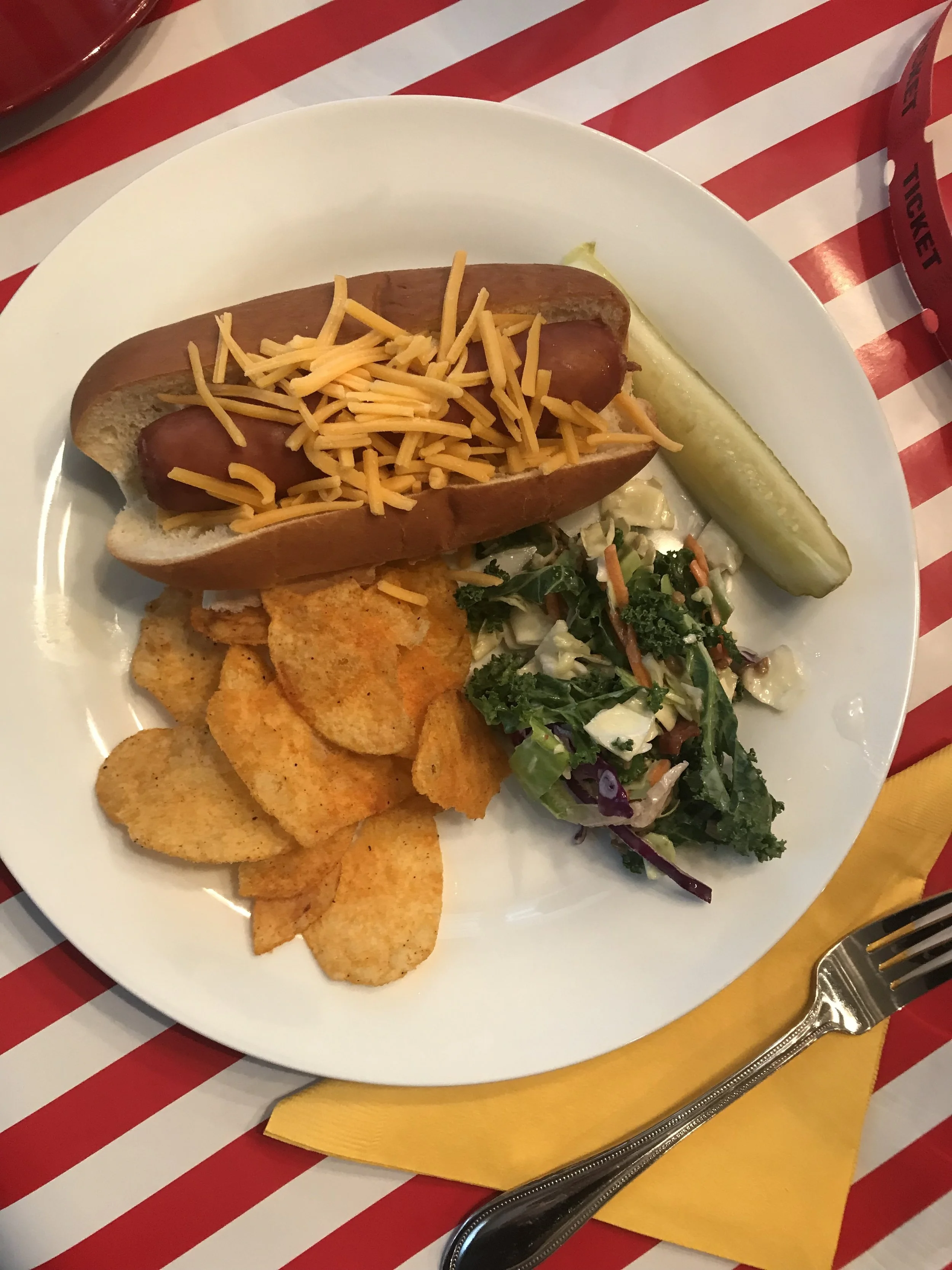 We had fare you find under the big top for dinner: cheddar brats, chips, pickle spears.... and chopped salad. That isn't really circus food but balances out the rest.